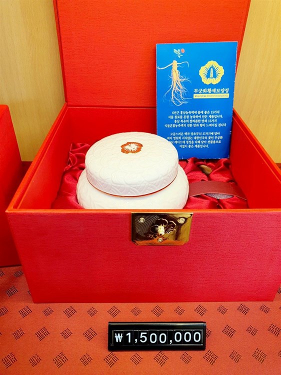 - Chiếc hộp đựng cao thiên sâm cũng nói lên điều đặc biệt về sản phẩm : 100% chiếc hộp được gia công ghép lại bằng tay bởi nghệ nhân hàng đầu, trên mặt hộp cùng khóa được in lên hình quốc hoa của Hàn là Mugunghwa nói lên sự cao quý của sản phẩm được quan tâm tỉ mỉ trên từng chi tiết nhỏ