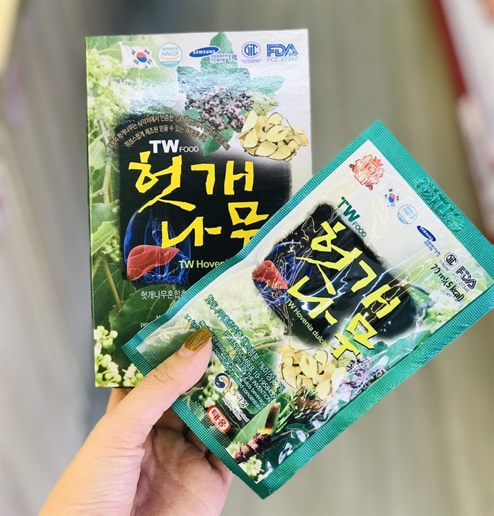 Thành phần: 50% hovenia dulcis thunberg. 10% táo đỏ hàn quốc , 10% câu kỳ tử. 10% Clycyrrhizae Radix, 10% Schizandra, 10% Cinnamon.