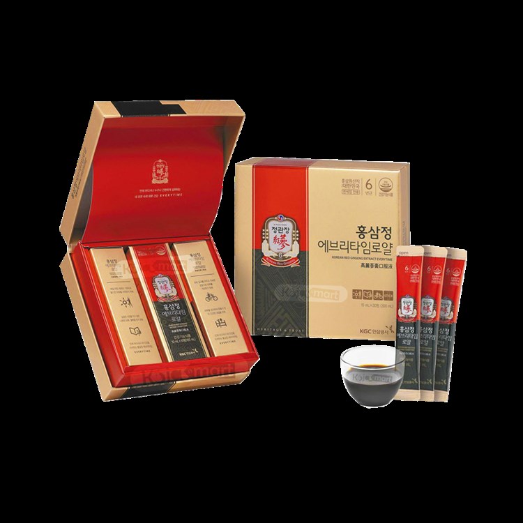 - Tinh chất hồng sâm Cheong Kwan Jang Korean Red Ginseng Extract Everytime được kết hợp giữa hồng sâm 6 năm tuổi và các loại thảo dược quý khác chứa nhiều tinh chất bổ dưỡng và các loại vitamin có lợi cho cơ thể. Hương vị nhẹ nhàng, thơm ngon hợp với mọi thành viên trong gia đình mọi lúc mọi nơi